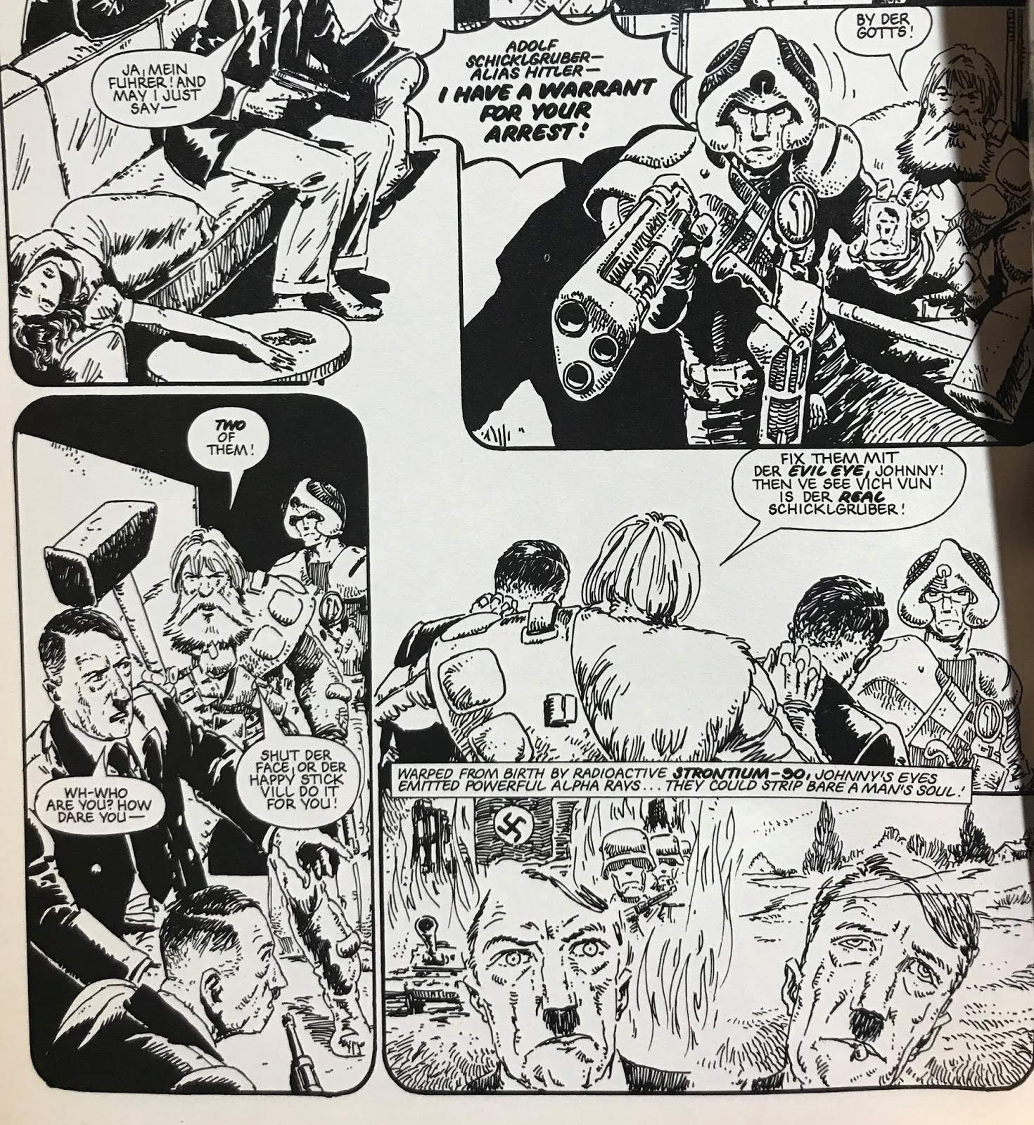 Ikincisi ise siradisi hikayeleri; John Wagner'in senaryolari. Jonny Alpha kimi zaman cehennem olduguna inandiklari bir boyuta seyahat etmekteler bir suclunun pesinde , yahut gecmise yolculuk yapipp Hitlerin de pesine dusuyorlar. Siradan bir bilimkurgudan cok farkli ucuk kacik senaryolar. Westernlerden sevdigimiz 'Olu ya da Diri' ele gecirme, kelle avciligi hikayelerini tum galakside anlatmakta Wagner. Zaman bombasi gibi atildiginda kucuk bir bolgedeki insanlari 15-20 dakika gelecege gonderen -dolayisiyla (gezegen hareket etmeye devam ettigi icin ) uzay bosluguna gonderip olduren fantastik silahlara sahip Johnny.